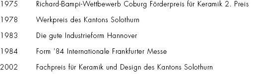 2002 Fachpreis für Keramik und Design des Kantons Solothurn |